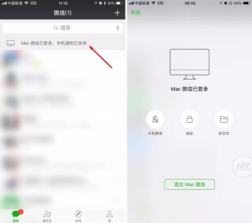 當你在 PC 端登錄微信之后,手機端的微信聊天界面頂部會有一條狀態(tài)欄。點擊它,然后在新彈出的界面中選擇「手機靜音」,就可以避免煩人的手機消息提醒啦!